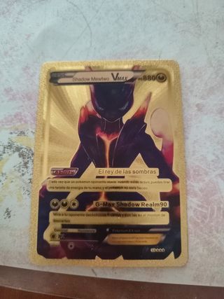 Se venden 3 cartas Pokémon de edición especial. Son cartas doradas, con detalles brillantes y llamativos. - Incluye Shadow Mewtwo VMAX y Charizard VMAX Gigantamax. - Las cartas se encuentran en excelente estado.