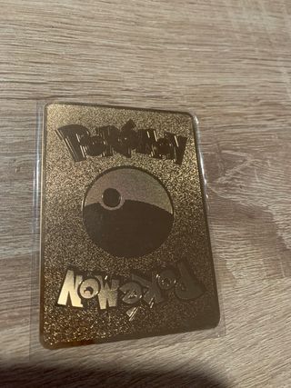 Cartas Pokémon ,la dorada es metálica y está nueva y las otras dos son de plástico y están impolutas