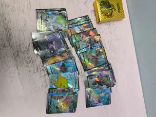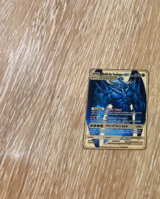 Colección de cartas Pokémon de edición especial en color dorado. No son metálicas. Precio unidad 5€ Hago precio por todas - Incluye cartas con arte brillante y detalles metálicos. - Presenta varios Pokémon populares en formato GX. - Ideal para coleccionistas y aficionados.