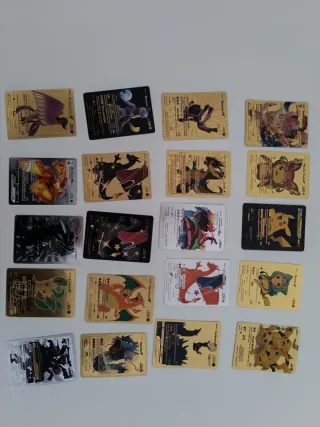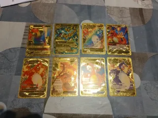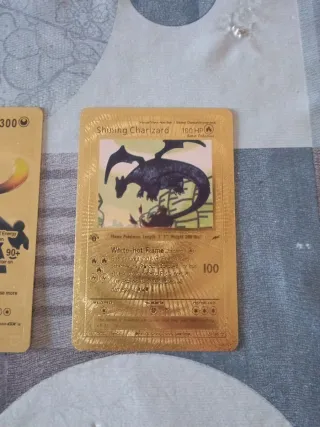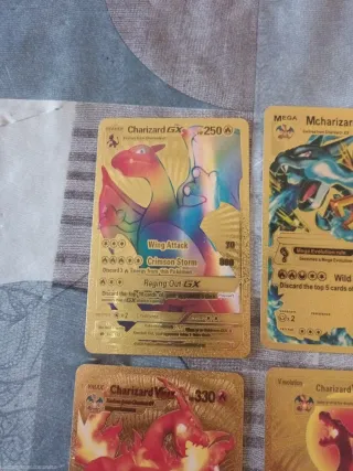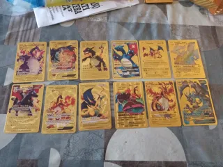 Conjunto de cartas Pokémon de Charizard con acabado dorado. No son metálicas. Hago envíos Precio unidad 10_€ Si te las quedas todas te hago buen precio! - Diseño brillante y llamativo. - Incluye varias cartas de Charizard con diferentes ilustraciones.