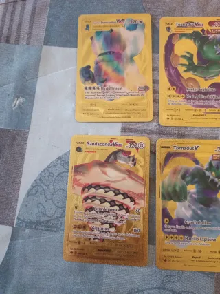 Colección de cartas Pokémon con acabado dorado. Precio unidad 3€ Preguntad por carta alguna está vendida - Cartas V Max. - Diseño brillante y llamativo.