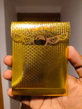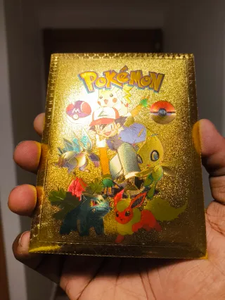 Colección de 16 cartas Pokémon doradas. Cada carta presenta un diseño brillante y detallado. - Cartas con acabado metálico dorado. - Diseños variados de Pokémon. - Ideales para coleccionistas. Proxy