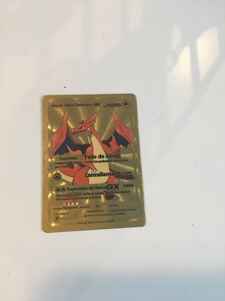 Carta de Pokémon de Charizard GX con acabado dorado. Ps(150000)
