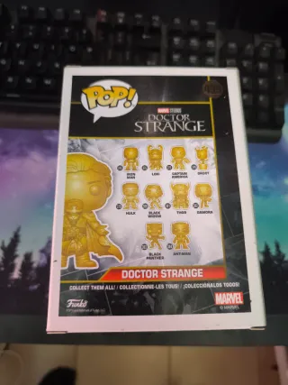 Figura coleccionable Funko Pop! de Doctor Strange con un acabado cromado dorado. Acepto cambio por cartas Pokémon, YuGiOh, Digimon.. u algun otro producto de tu perfil como videojuegos de ps3 ps4 ps5 Nintendo switch. - Diseño inspirado en Marvel Studios. - Edición especial Fan Vote Winner. - Bobble-head.