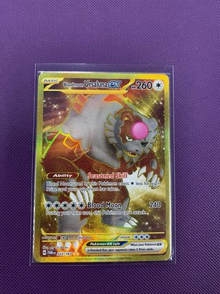 Carta Pokémon Bloodmoon Ursaluna EX en acabado dorado, de lacoleccion Twilight Masquerade en ingles. Del sobre a la funda, mas cartas en mi perfil