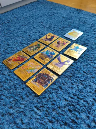 Cartas coleccionables de Pokémon con acabados dorados. - Diseño brillante y detallado. - Representación de varios personajes icónicos de Pokémon. Entrega en mano en Madrid. No hago envíos.