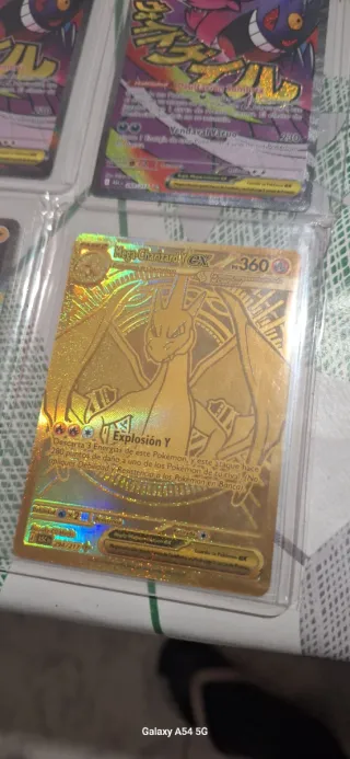 Carta Pokémon Mega Charizard Y EX dorada. - Ataque Explosión Y con 280 puntos de daño. - Habilidad Regla Megaevolución EX. - Dos mismas cartas, se pueden vender juntas o por separado. No compres anuncio, si compras mando energía, escucho ofertas serias.