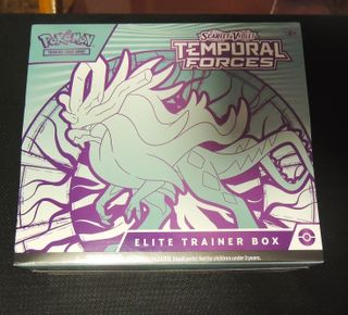Caja de Entrenador Élite de la expansión Fuerzas Temporales de Pokémon. - Idioma: Inglés. Contiene 9 sobres del set, fundas tematicas, dados, caja para guardar las cartas, pack de energias marcadores y separados mas la carta promo. Original sellada de fabrica en ingles