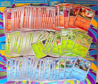 Colección de cartas Pokémon del Base Set. - En español, originales. Tienen algunos defectos, si quieres verlos mejor, avísame. - Todas las cartas de la imagen, 16 energías de fuego y 8 de planta, 42 en total. - Incluye cartas como Tangeela, Vulpix, Weedle y Nidoran. - Varias cartas de Entrenador como Recuperación de Energía y Quite de Energía.