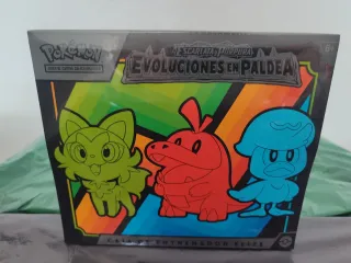 Caja de Entrenador Élite de Pokémon, de la expansión Escarlata y Púrpura: Evoluciones en Paldea. - Contiene cartas coleccionables. - Apto para mayores de 6 años.