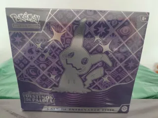Caja de Entrenador Élite de la expansión Destinos de Paldea de Pokémon TCG. - Contiene cartas coleccionables. - Diseño con Mimikyu y motivos de Paldea. - Apto para mayores de 6 años.