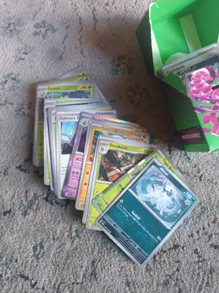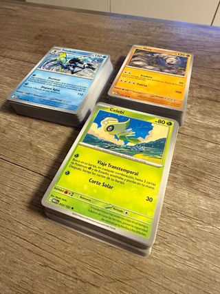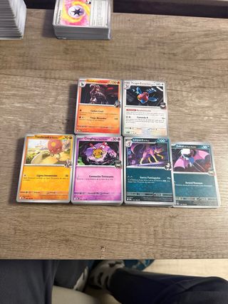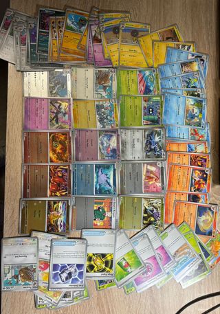 Prácticamente todas las cartas en perfecto estado. Pregúntame por cartas que necesites para rellenar un álbum o mazo tcg y te las vendo por separado. Puedo hacer envíos si lo necesitas Cuantas más compres más barato te lo dejo. Puedes preguntar por Pokémon, cartas de entrenador y energías.