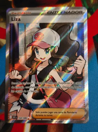Carta de Pokémon de Liza de la expansión Llama blanca ES, número 164/086. Ultra rare. Carta original