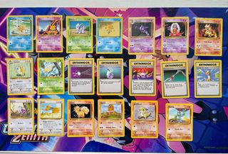 Colección de cartas Pokémon del set base de 1999. Incluye varias cartas de Pokémon y entrenadores. En buen estado ya que están siempre guardadas en álbum. Se hace precio por todas o por separado. Todas en español.