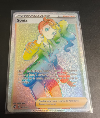 Se vende esta preciosa y buscada carta pokemon entrenadora Sonia de la coleccion Choque Rebelde, se envia en funda y toploader y muy bien protegida. Su estado es NM Combinalo con mis otros productos y haz tus lotes personalizados Trato en mano en Zaragoza o envio rapido. Perfil con muchas y excelentes valoraciones.
