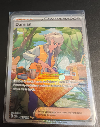 Se vende esta preciosa y buscada carta pokemon entrenador Damian de la coleccion base set escarlata y purpura, se envia en funda y toploader y muy bien protegida. Su estado es NM Combinalo con mis otros productos y haz tus lotes personalizados Trato en mano en Zaragoza o envio rapido. Perfil con muchas y excelentes valoraciones.