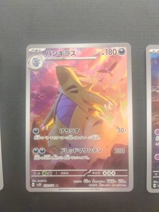 Se venden tres cartas de Pokémon japonesas. Sv6 112/101 AR tatsugiri Sv2D 079/ 071 AR tyranitar Sv7a 070/064 AR latios - Cartas de colección. - Perfectas para coleccionistas.