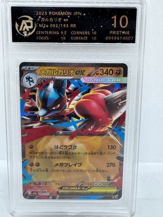 Carta Pokémon Mega Lucario EX, edición japonesa de 2025. Se encuentra en perfecto estado, con una calificación de 10. - Grado: 10 Pristine - Centering: 9.5 - Corners: 10 - Edges: 10 - Surface: 10 - Número de carta: M2a 092/193 RR Original