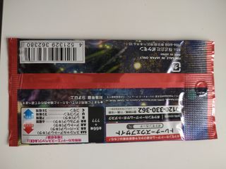 Paquete de cartas de Pokémon de edición japonesa. Contiene 5 cartas. - Ilustración de Pokémon. - Diseño del paquete en rojo y azul.