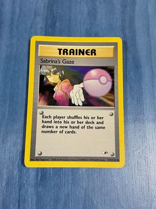 Carta de entrenador Pokémon Sabrina's Gaze. - Tipo: Entrenador. - Ilustrador: Ken Sugimori. - Edición: Gym - Número de carta: 125/132. Precio no negociable ❌ Chollo. ENVÍO SOLO CON GLS, INPOST O SEUR (cercanía). Correos consultad. no leer: pikachu charizard gengar mew mewtwo eevee entei lugia dialga