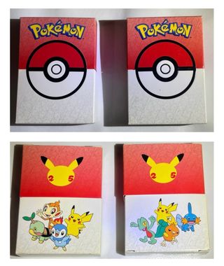 Lote de dos cajas oficiales de la promoción de McDonald's por el 25 Aniversario de Pokémon (año 2021). Contenido: Solo las cajas de cartón, NO incluye cartas ni sobres. Ideal para coleccionistas que quieran completar el set de la promoción o para guardar mazos de cartas.