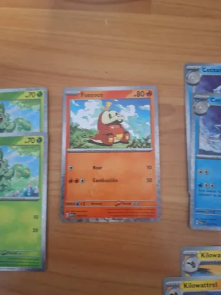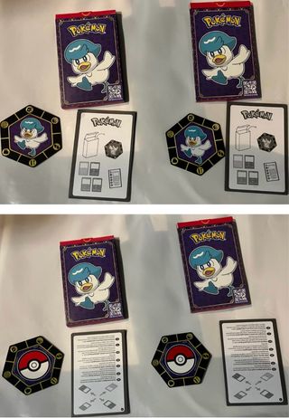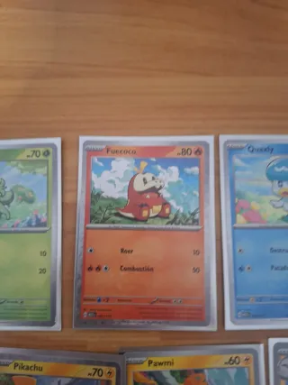 Colección de cartas Pokémon de McDonald's. - Incluye cartas de Quaxly y Pikachu V. - Envío por Correos. - También se incluyen fichas hexagonales con diseño de Fuecoco. - Una tarjeta roja con diseño de Pokémon y código QR.