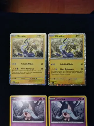 - Colección de cartas Pokémon TCG de McDonald's 2025 y una de 2022. - 1€ la unidad. - Cartas disponibles 2025: 3. Miraidon (x2) / 4. Jigglypuff (x2) / 5. Hatenna (x3) / 6. Dragapult / 7. Quagsire (x2) / 9. Umbreon / 13. Eevee / 14. Rayquaza (x2). - Carta disponible 2022: 10. Tynamo a 0,50€ - Si compras 3 te regalo una extra. - Si estás interesado te regalo las 4 que vienen en la última foto juntas. ESTÁN RESERVADAS - Vendo o intercambio. Me faltan: 8. Koraidon / 10. Hydreigon