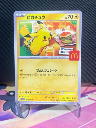 Carta promocional de Pikachu de la colaboración con McDonald's. En perfecto estado, alto potencial para PSA 10 ,Triple protección. - Ilustración especial de Pikachu comiendo. - Símbolo de McDonald's visible en la carta. - Idioma: Japonés.