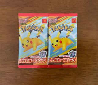 Dos paquetes promocionales de cartas Pokémon de McDonald's con Pikachu. - Cada paquete contiene 2 cartas. - Edición especial MEGA.