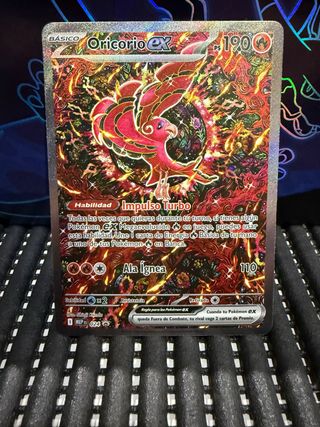 Carta Pokémon Oricorio ex, edición Ultra Premium. NO LEER. Pikachu, charizard, base set, mewtwo, tcg, pokemon, Umbreon, coleccionismo, juntos de aventuras, rivales predestinados, mega evoluciones, fuegos fantasmales, cenit supremo, 151, evoluciones prismáticas ,booster box, etb, premium colección, entrenador de elite, paradox rift, paldean fates, fuerzas temporales twilight masquerade, fabula sombria, corona astral, Chispas Fulgurantes, Prismatic evolutions, llama blanca, fulgo negro,