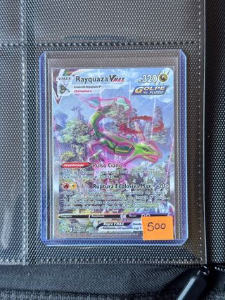 Carta Pokémon Rayquaza VMAX, parte de la expansión Espada y Escudo. - Original y en portugues muy exclusiva - Estado NM - Se envian mas fotos/video - Envio certificado gratis Pago Bizum o trato en persona. No leer rayquaza vmax evolving skies cielos evolutivos castellano portugues brasileño sol y luna escarlata y purpura charizard mega ex venusaur blastoise dragonite ex fuegos fantasmales heroes ascendentes ascended heroes evoluciones prismaticas prismatic evolutions pokemon tcg greninja giratina mew mewtwo mega gengar pikachu squirtle charmander bulbasaur magikarp gyarados cenit supremo crown zenith rivales predestinados