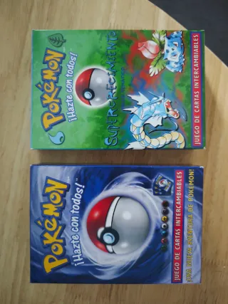 Pack de dos cajas de Pokémon, edición Base Set de 1999. Una de ellas es la Supercrecimiento y la otra Una Nueva Aventura. Están completas con los manuales, fichas de juego, la moneda etc. Sin las cartas. Están impolutas como nuevas, precio unitario. - Caja Supercrecimiento con diseño verde. - Caja Una Nueva Aventura con diseño azul. - Ambas son juegos de cartas intercambiables. Precio a negociar o cambio por figuras dragón ball o cartas TCG. Gancho. TCG cartas Pokémon Pikachu Charizard holográfica primera edición gradeada 10 9 España ingles Japón barata compro cambio regalo.