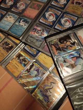 Vendo TODA mi colección de TCG de Pokémon, esta parte del pack es en referencia a los álbumes, también incluidos, UltraPro negro, azul y de Bulbasaur que incluyen únicamente cartas de las dos primeras colecciones: Escarlata y Púrpura, y Evoluciones en Paldea. Hay muchas cartas raras, que normalmente se valorizan bastante. Entre los tres álbumes hay mínimo 221 cartas diferentes, sin contar las que hay repetidas. Doy preferencia al trato en mano en Madrid, antes que hacer un envío, así además se pueden ver, zona de Alcobendas. PRECIO NO NEGOCIABLE. Están en perfecto estado, del sobre al álbum, sin usarse para jugar.