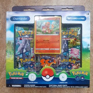 Charmander Pokémon GO, ¡listo para un nuevo entrenador! Producto sellado nuevo a estrenar en inglés. Esta colección incluye: - 3 sobres de cartas coleccionables Pokémon. - 1 carta promocional de Charmander. - 1 pin de Charmander. #pokemon tcg #cartas pokemon