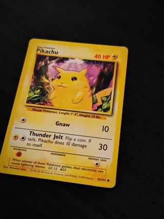 Pikachu Mejillas amarillas sin sombras. Pokémon TcG ,Pikachu 58/102, Shadowless, Mejillas amarillas. En perfecto estado como nuevo. Escucho ofertas