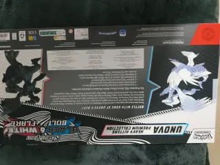 Colección Premium de Pokémon TCG Unova Heavy Hitters. - 2 cartas promocionales foil de Zekrom ex y Reshiram ex. - 2 cartas promocionales foil de Victini y Zoroark. - 1 carta promocional foil oversize de Kyurem ex. - 6 paquetes de mejora Scarlet & Violet-Black Bolt. - 6 paquetes de mejora Scarlet & Violet-White Flore. - 1 código para Pokémon TCG Live.