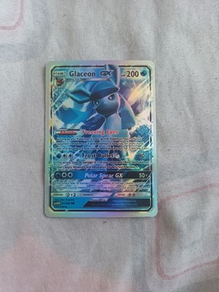 Se venden dos cartas de Pokémon GX en perfecto estado. Son Glacéon GX y Dawn Wings Necrozma GX. - Incluyen las dos cartas mostradas en las imágenes. - Cartas brillantes y en muy buen estado.