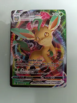 Carta Pokémon de Leafeon VMAX. - Ilustración brillante y a todo color. - Ataque Hierba Lazo y Maxihoja. - Número de carta: 202/203.