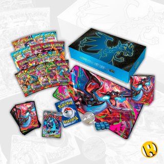 Colección Ultra Premium de Charizard EX de Pokémon en Español. La caja contiene: - 18 sobres (Fuegos Fantasmales, Tempestad Plateada y Origen Perdido) - Fundas - Tapete - Moneda - Dados - Cartas promocionales. - Caja de baraja. Los sobres de la segunda foto no corresponden con los que vienen, en la edicón española son diferentes. En la edición española vienen sobres de colecciones antiguas como Tempestad Plateada y Origen Perdido que tienen hits muy altos como el Lugia V o Giratina V.