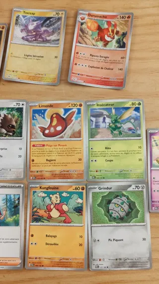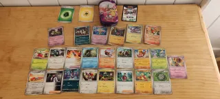 ⚠️⚠️⚠️Cartas básicas en francés ⚠️De la colección Faille Paradoxe ⚠️ 1 carta holográfica ⚠️ 3 cartas reverse ⚠️2 energías ⚠️ 1 carta código ⚠️4 cartas básicas de la colección flammes Obsidiennes reverse Colección de cartas Pokémon variadas. Incluye cartas de energía y Pokémon. - Cartas de energía (planta, rayo). - Variedad de cartas Pokémon. - Incluye funda protectora.