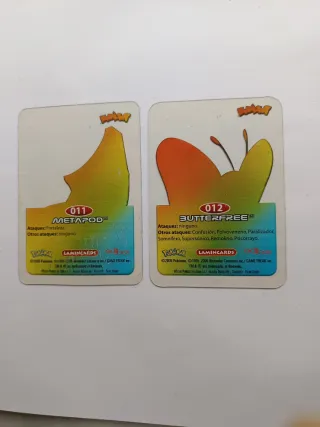 Lote de 2 cartas de Pokémon, de la marca Lamincards tienen algún desperfecto por el paso de los años. - Carta de Metapod. - Carta de Butterfree. Se aceptan ofertas también por cartas individuales pero cada tiene su precio dependiendo del Pokémon y del estado en el que esté, y también se pueden hacer lotes con las otras cartas.