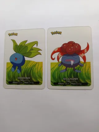 Lote de 2 cartas de Pokémon, de la marca Lamincards tienen algún desperfecto por el paso de los años. - Carta de Oddish. - Carta de Gloom. Se aceptan ofertas también por cartas individuales pero cada tiene su precio dependiendo del Pokémon y del estado en el que esté, y también se pueden hacer lotes con las otras cartas.