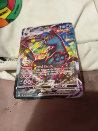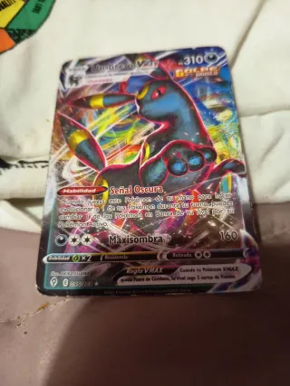 Carta Pokémon Umbreon VMAX, edición especial. - Habilidad: Señal Oscura. - Ataque: Maxisombra. - Ilustración de Akira Egawa. - Regla VMAX incluida.