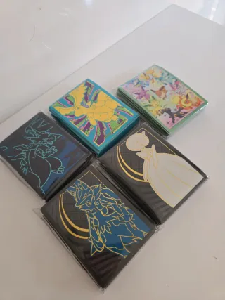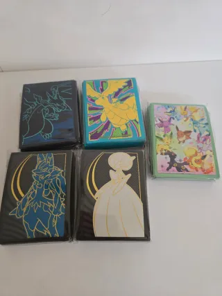 Lote de fundas + divisores pokemon. Son 33 fundas sacadas de élites y cajas especiales (fundas antiguas y modernas). Todas selladas sin uso. Originales. Son 35 divisores sacados de élites (pack de 4 divisores) Nuevos sin uso. Originales. Gastos de envío por cuenta del comprador. ####No busco "x" funda o divisor va el lote completo.NO separo###