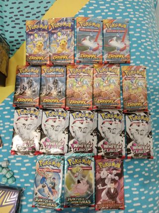 Caja de Entrenador Elite de Pokémon. incluye en total 17 sobre abiertos con cartas dentro, para tener los envoltorios y cuidar las cartas. 9 de Chispas Fulgurantes, 5 de White Flare, 2 de Caminos Unidos y 1 del team Rocket. Incluye la caja para guardarlo todo, fundas de la caja, ademas de fundas y 25 toploades profesionales para conservar cartas en perfecto estado. Dados y monedas para jugar y el librillo para ver las cartas de la expansion. La carta arte alternativo de Magneton. lo vendo todo junto, pero acepto compras por separado, hablarme sin dudarlo!!!!!