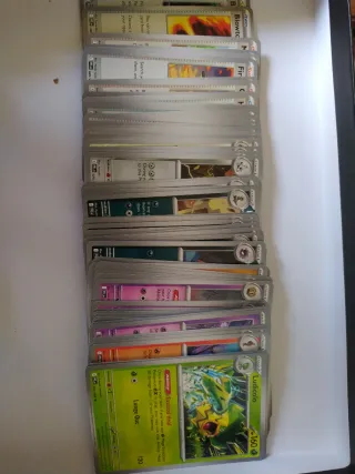57 cartas Pokemon en inglés de diferentes extensiones, Halloween, Paradox, Pokemon Go, Reverse Holo, SVI, TWM... acepto cambios por Stage 2 tipo fuego de cualquier edición