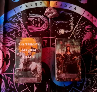 Baraja de tarot Da Vinci Arcana. - Incluye 78 cartas. - Diseño inspirado en el arte de Da Vinci. - Ideal para lecturas de Tarot y Meditación.