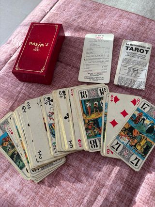 Baraja de cartas de Tarot francés de la marca Maxim's de Paris. Incluye las instrucciones del juego. - Cartas de Tarot francés. - Incluye folleto de reglas. - Caja original de Maxim's de Paris.