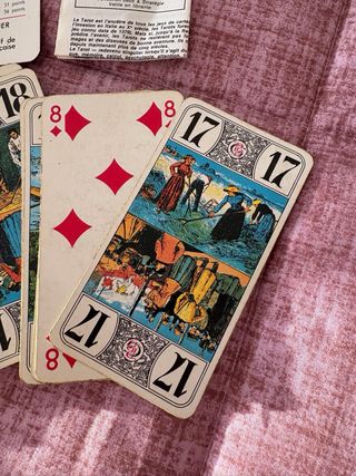 Mini tarot de Marsella con un diseño clásico. - Cartas con ilustraciones tradicionales. - Ideal para coleccionistas o para iniciarse en el tarot. -Nuevas sin uso.