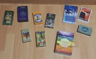 Coleccuón de 9 mazos de cartas de Tarot. - Viceversa Tarot. Cartas+Librito en 4 idiomas 10€ - El Tarot Pagano. Cartas+Librito en 5 idiomas. 13€ - El Tarot de los Druidas. Cartas+Librito en 5 idiomas. 13€ - El Tarot Celta. Cartas con instrucciones en 4 idiomas. 13€ - Tarot del Zodiaco para principiantes con el significado y correspondencias en cada carta. Muy práctico para aprender a interpretarlas. 13€. - Tarot Zen di Osho. 15€. - Le Carte Lakota con libro. Son cartas super originales. 10€. - Chakra Wisdom Oracle Cards con estuche y libro. 15€ - Tarot 2 en 1. 8€ Son todos nuevos. Se venden juntos o por separado. Envío dusponible.